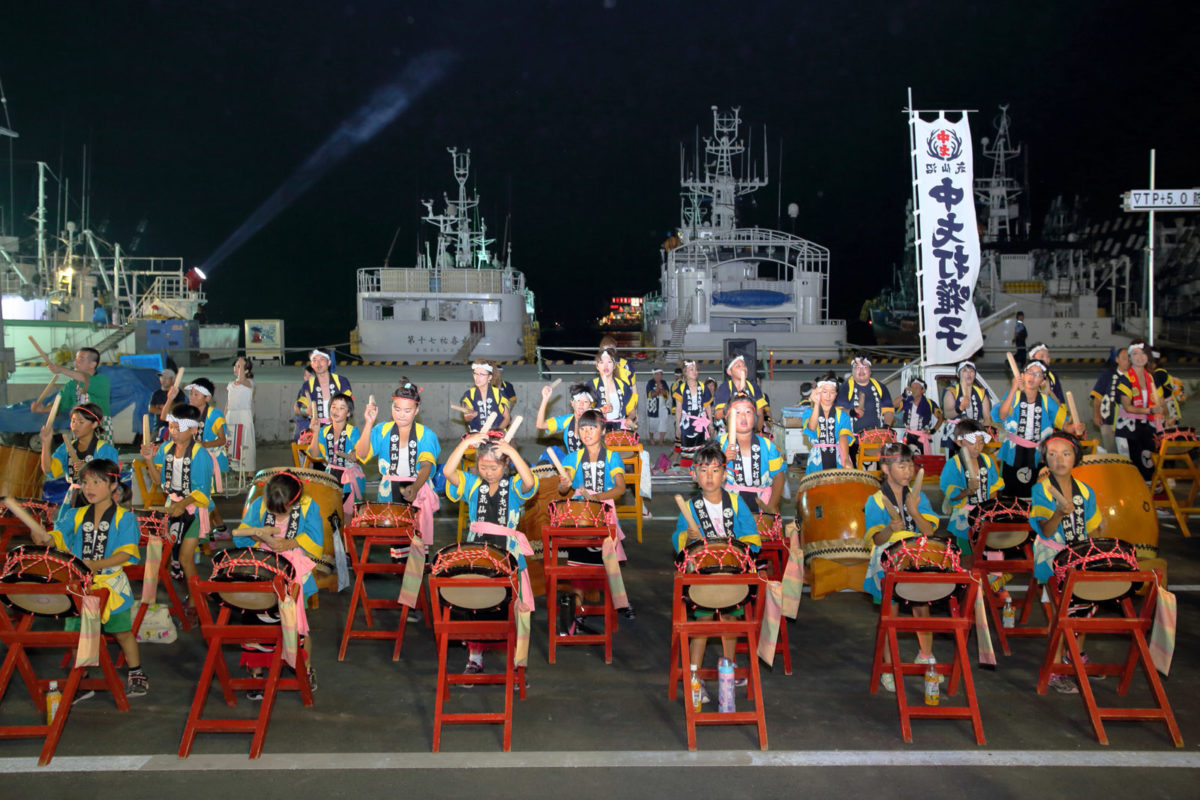 原为“山神祭”上用来庆祝产金而进行的击太鼓表演,在渔港不断发展的同时也成为人们用来祈求航海安全和渔业丰收的文艺表演。击太鼓是种宝贵的乡村文艺形式,充满跃动感的雄壮鼓声结合了源自于黄金开採的文化与海洋文化,能让人们产生“这是活力与热闹的象徵,不断被我们传承下去”这样的共鸣。